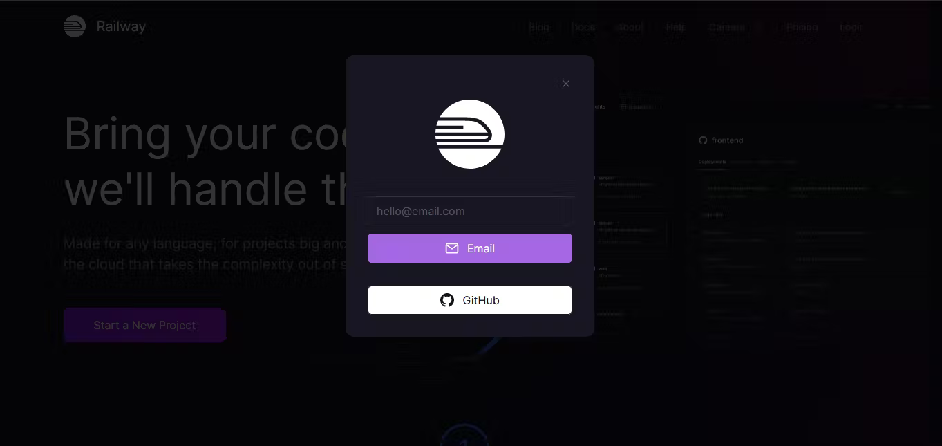 We need to create a Railway account to deploy this app on Railway. We can do so by going on the Railway HomePage.